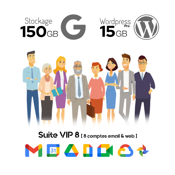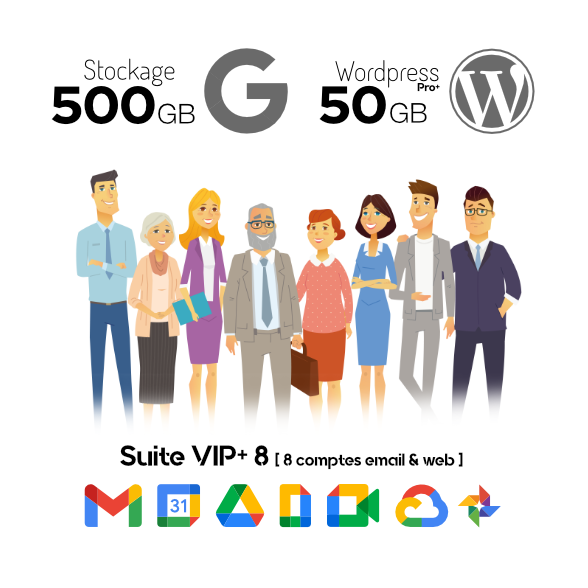 - Huit comptes Google Workspace incluant quatre emails personalisés @filippi.fr sur la plateforme Gmail. Stockages (15Gb, 30Gb, 150Gb ou 500Gb)
