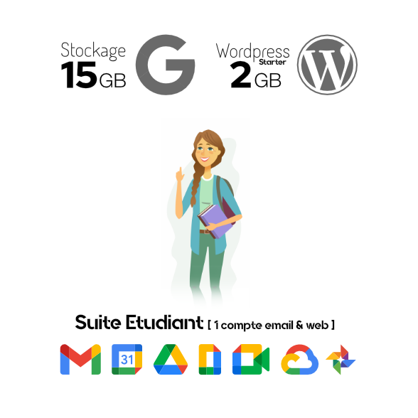 - Un compte Google Workspace incluant un email personalisé @filippi.fr sur la plateforme Gmail. Stockages (15Gb, 30Gb, 150Gb ou 500Gb)